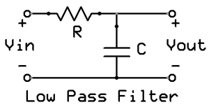 However, many filters are even simpler than the RLC circuit. A simple low pass filter consists of a resistor and a capacitor and all frequencies below a specified frequency are allowed to “pass” through the filter, while all frequencies greater than the specified frequency are “blocked”.