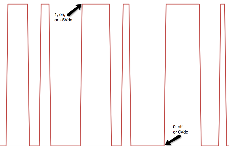 Electronics are said to be digital when they deal only with on and off voltages. This is different from analog because in analog systems signals can vary to any value between some minimum and maximum values. As an example, the temperature in the room is an analog value because it can change and can have many values. However, a light switch is either on or off, this is digital.