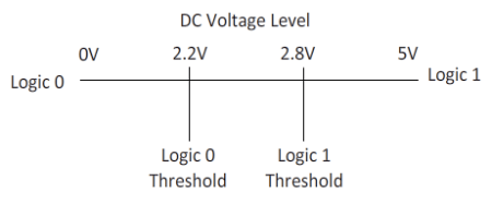 The inputs and outputs in a gate behave as follows. If the voltage is anywhere between 0 and the logic 0 threshold the gate interprets it as a 0. If the voltage is anywhere between the maximum voltage and the logic 1 threshold the gate interprets it as a 1. If the voltage is anywhere in between the thresholds, it is considered floating and will produce unexpected and inconsistant results. The voltages labeled as threshold are only examples and shouldn’t be understood as standard. (Audio)