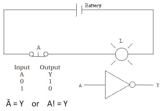 The NOT gate, or inverter, has only one input and follows the rule, “If the input is a 1 then the output is a 0 and if the input is a 0 then the output is a 1.” The NOT gate cannot have more than one input. (Audio)