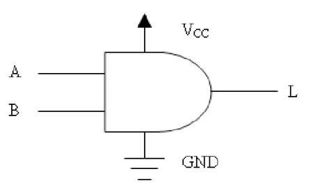 Just like an operational amplifier, the logic gate has connections to a power supply and ground as shown below. (Audio)