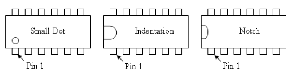 Again just like an operational amplifier, the logic gate includes more than one gate inside each chip and has a pin diagram. Pin 1 on any logic chip is the bottom left pin when the orientation indicator (dot, indentation, or notch) is on the left.