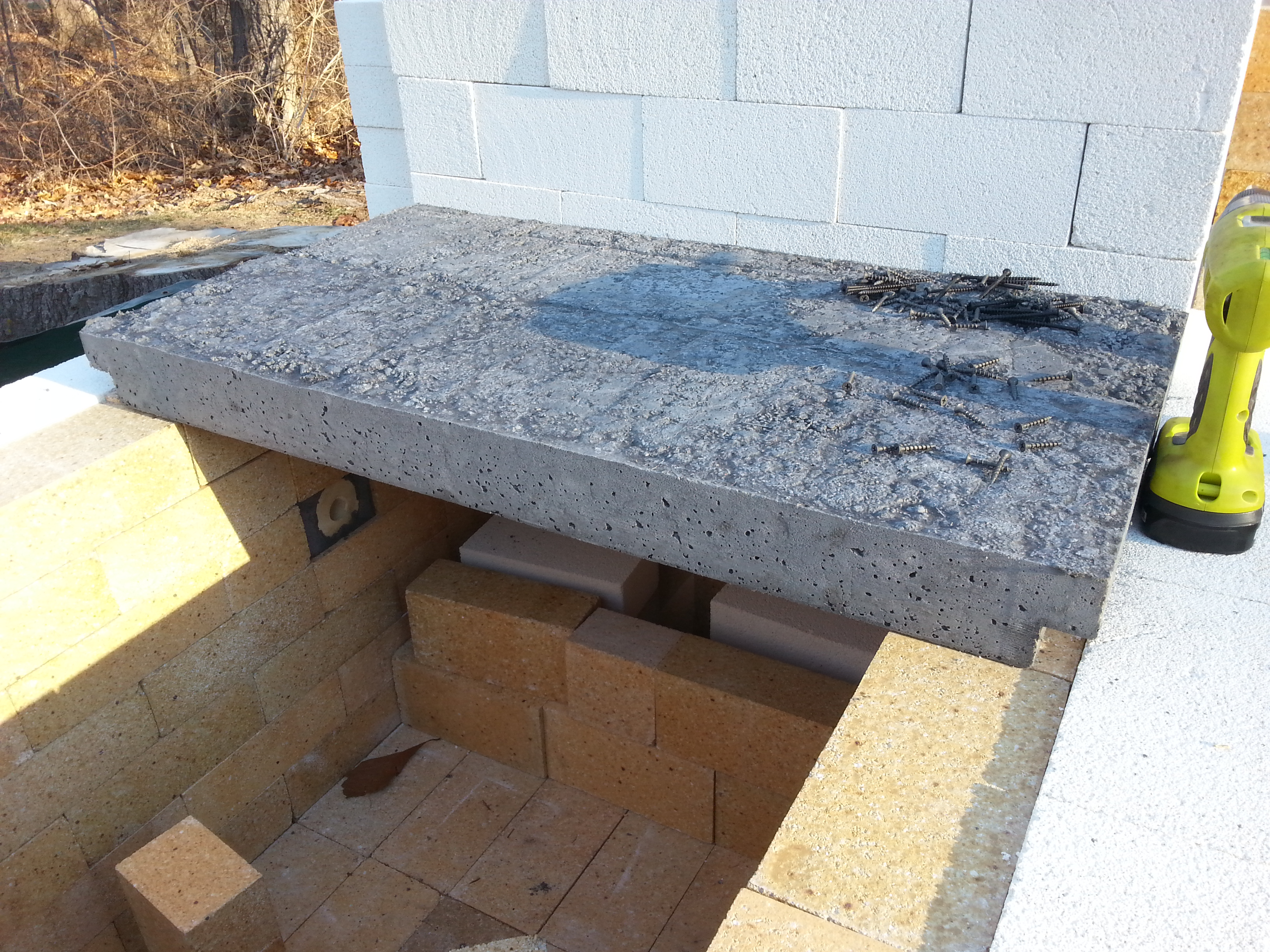 The build process started well before the bulk of the materials arrived with the construction of the molds for the castable refractory. With low grade 1/2″ plywood and 2×4 studs, all the molds were made based on the design. A relatively high density of screws were used in the bottom plywood into the 2×4 material in order to ensure that it remains rigid.
